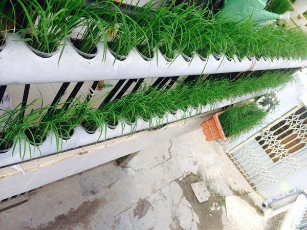 ![]() Thích tự tay trồng rau, trái sạch nhưng nhà hẹp, anh Trần Thế Phong ở quận Bình Thạnh, TP HCM, tận dụng khoảng không ngoài lan can để thiết kế hệ thống thủy canh. “Tôi duy trì vườn rau như thế này đã gần 5 năm rồi. Lan can hẹp nên buộc phải trồng trong ống nước. Chỉ mất công lúc lắp đặt thôi, còn trồng và chăm sóc thì nhàn hơn thổ canh”, anh Phong nói.